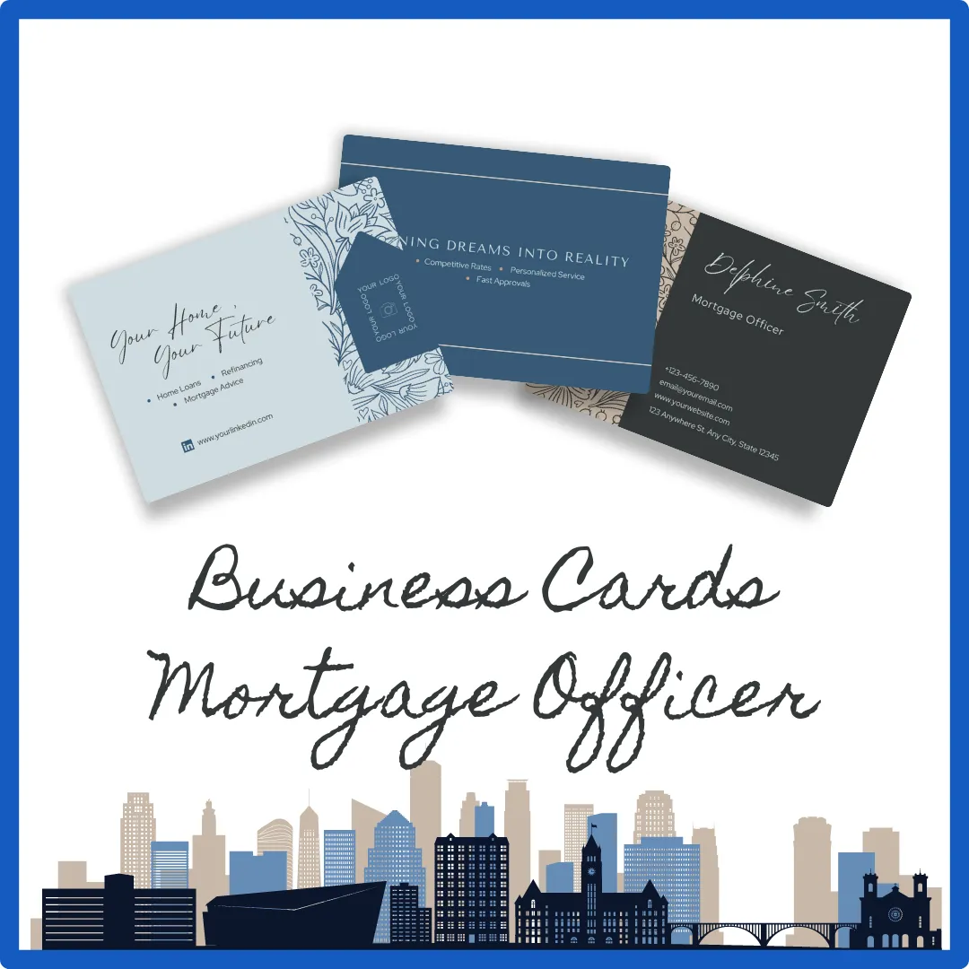 Create professional business cards tailored for mortgage officers. These templates offer customizable designs that allow you to showcase your contact information, services, and branding in a compact format.