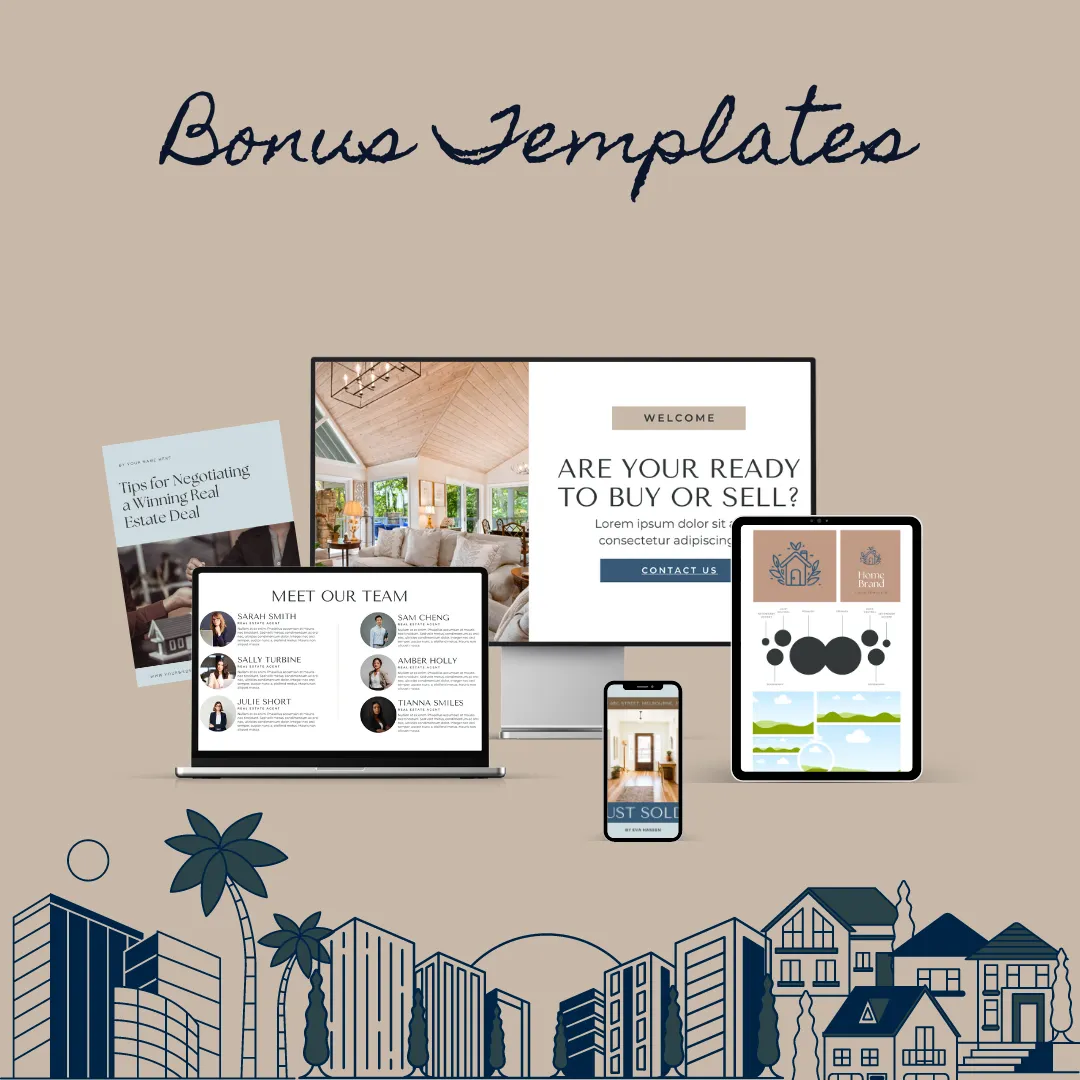 You'll receive 1000+ templates designed to streamline your real estate business, helping you at every step to market effectively, close deals, and build a successful career in real estate!
